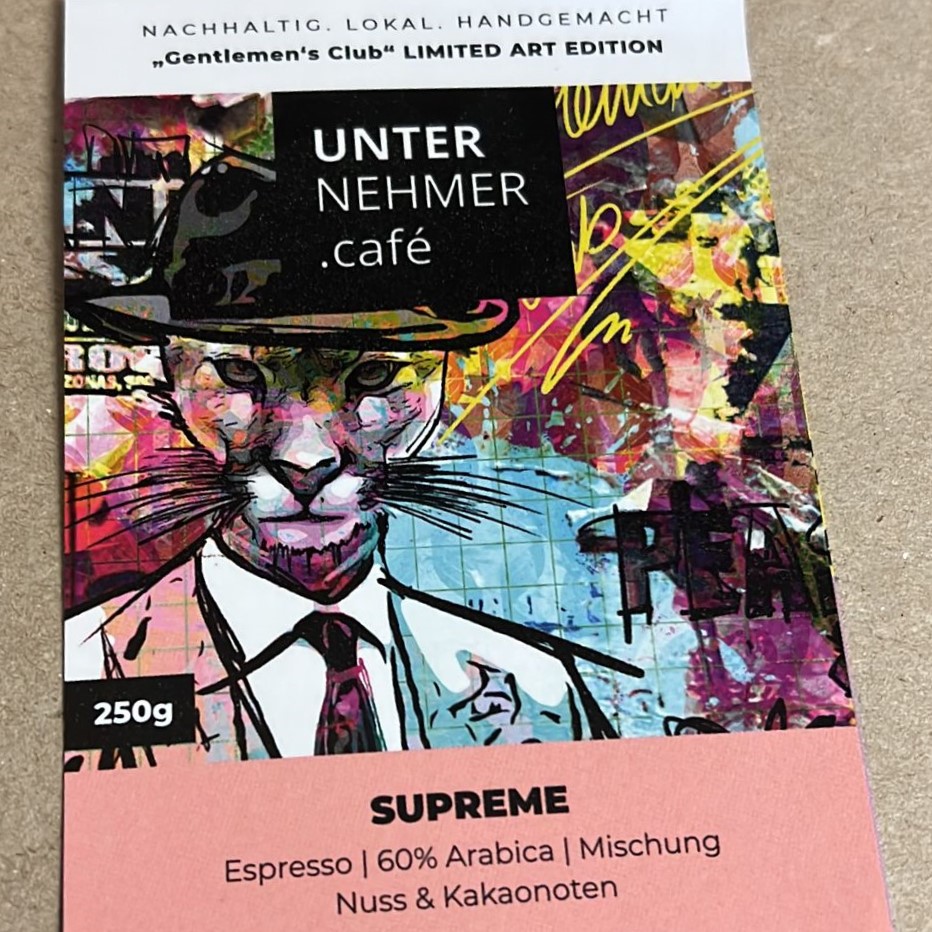 Der Espresso „SUPREME“ mit einem eigens für mich gemaltem Bild. Das Bild hängt im Original in meinem Arbeitszimmer.